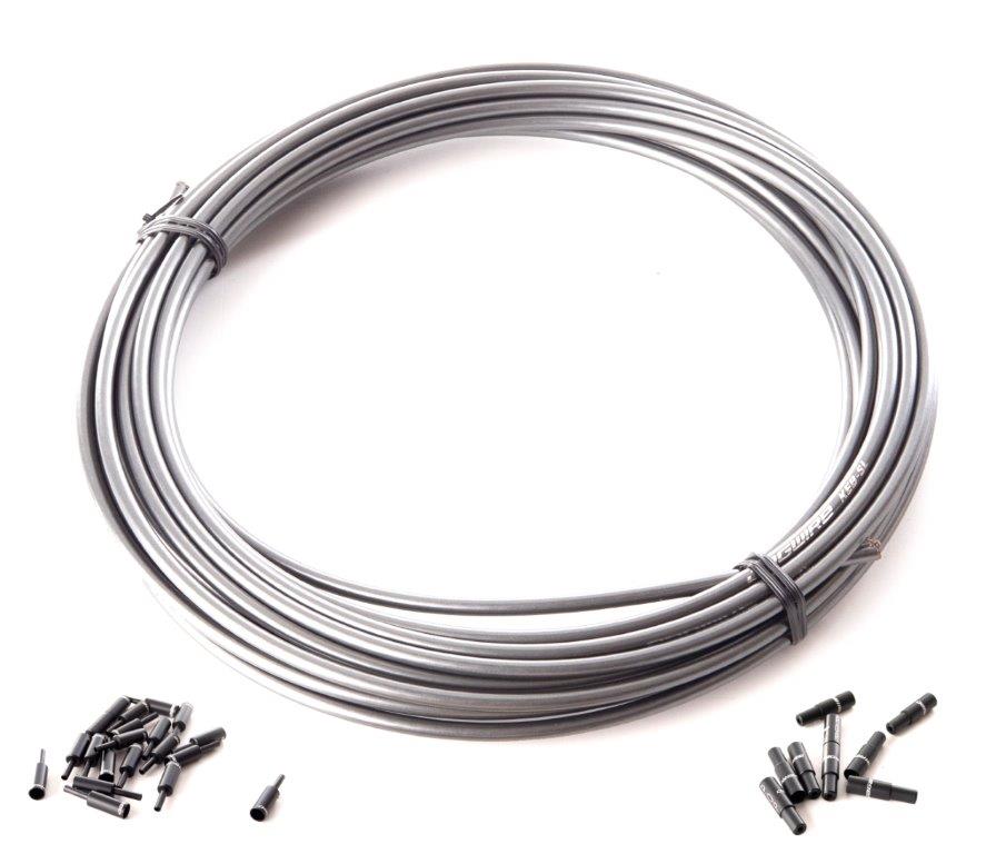 Pancerz linki hamulca JAGWIRE KEB-SL / pancerz wzmacniany oplotem z kevlaru / wewnętrzna rurka wypełniona na całej długości smarem syntetycznym / 5mmx10m / w komplecie aluminiowe końcówki / kolor szary ICE