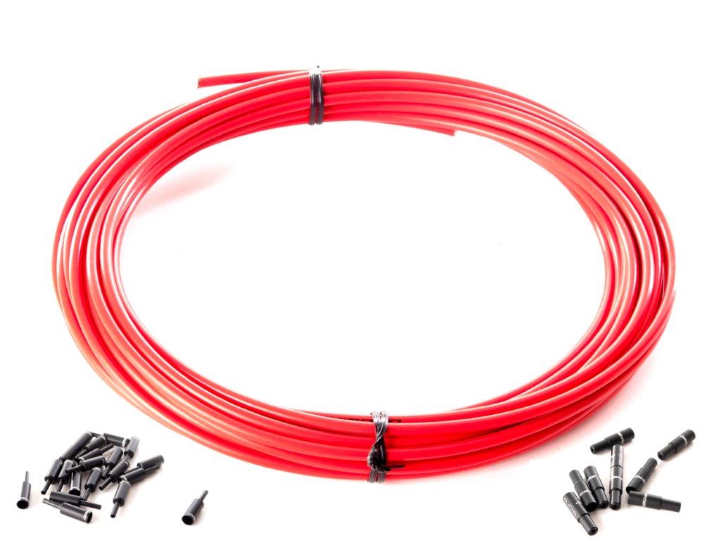 Pancerz linki hamulca JAGWIRE KEB-SL / pancerz wzmacniany oplotem z kevlaru / wewnętrzna rurka wypełniona na całej długości smarem syntetycznym / 5mmx10m / w komplecie aluminiowe końcówki / kolor czerwony