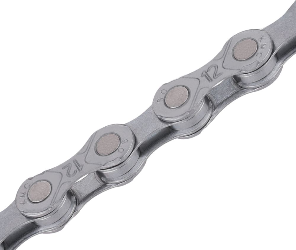 Łańcuch 12-biegowy KMC e12 EPT / 1/2"x11/128" / powłoka EcoProTeQ zabezpieczająca przed rdzewieniem / zaprojektowany do rowerów e-bike z silnikiem umieszczonym centralnie / wysoka trwałość / zwiększona trwałość sworzni / odporny na drgania / konstrukcja X-Bridge zwiększająca szybkość, gładkość i precyzję zmiany przełożenia / lekki (~272g) / 130 ogniw / zapinka 12NR EPT w komplecie / szary